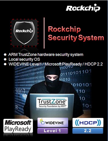 ROCKCHIP SECURITY SYSTEM是一種全新的硬件安全方案,基于 ARM推出的ARM TrustZone技術,可靈活整合到瑞芯微生產的ARM Cortex A系列芯片,從而可以提供用戶更高的安全和更友好的用戶體驗,并可以使實現簡單的便捷的鏈接到數字網絡上。特別是在用戶連接更加頻繁,應用程序數據交換更大的情況下,ROCKCHIP SECURITY SYSTEM可提供更智能,更快捷的用戶安全通道。