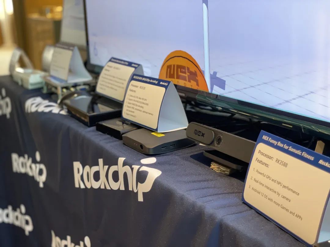 在機器視覺展區,展示了搭載RK3588的邊緣計算服務器,提升各視覺應用領域的AI算力;還展示了搭載新一代機器視覺方案RV1106/03的IPC產品,首幀穩定圖像小于200ms,支持HDR,超低功耗;同時,還展出了采用RV1126的可視門鈴,支持雙攝像頭,2K HDR及雙向音頻等特性;以及搭載RK3588的游戲盒子,可通過攝像頭進行實時交互,用戶可體驗流暢的體感游戲。