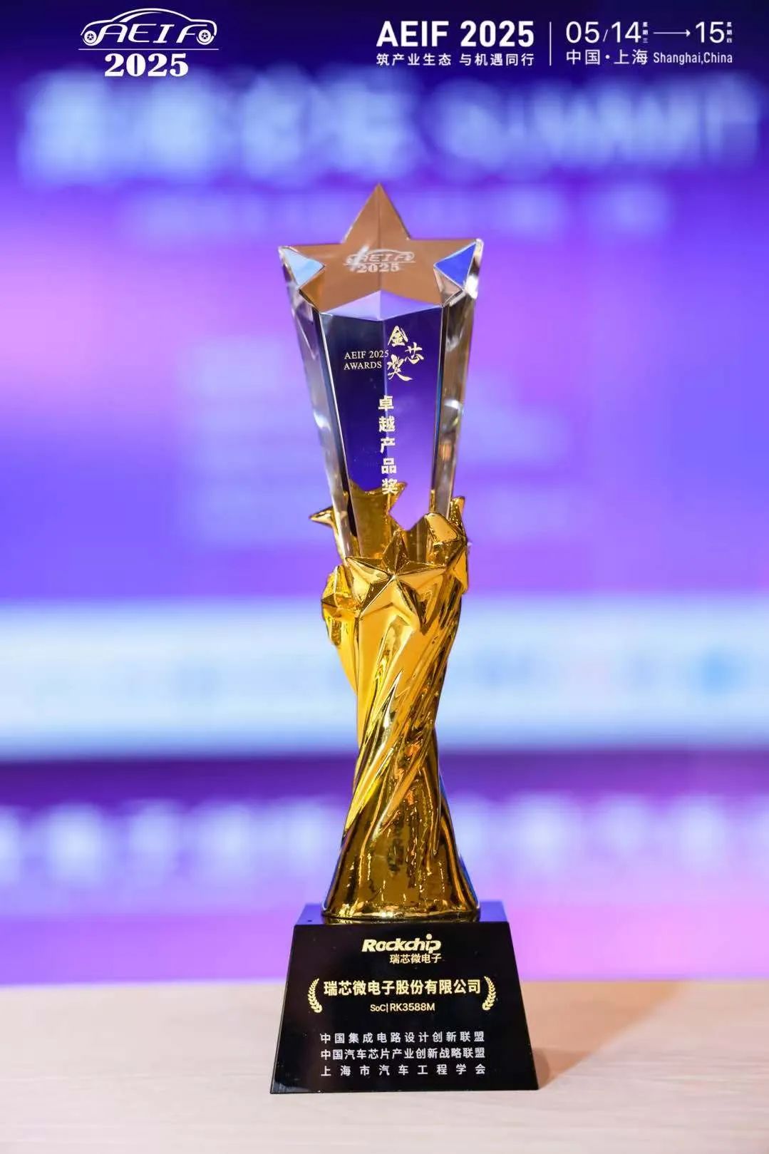 5月14-15日,由中國集成電路設計創新聯盟、中國汽車芯片產業創新戰略聯盟、上海市汽車工程學會聯合在滬舉辦“第十二屆汽車電子創新大會暨汽車芯片產業生態發展論壇(AEIF2025)”,現場正式發布《2025 國產車規芯片可靠性分級目錄》,并頒發了“2025汽車電子金芯獎”系列獎項,作為汽車電子領域極具權威性和影響力的目錄及行業獎項,備受關注。瑞芯微8nm旗艦級芯片RK3588M憑借高性能高算力及豐富的量產案例,入選目錄并榮獲金芯獎評選的“卓越產品獎”。