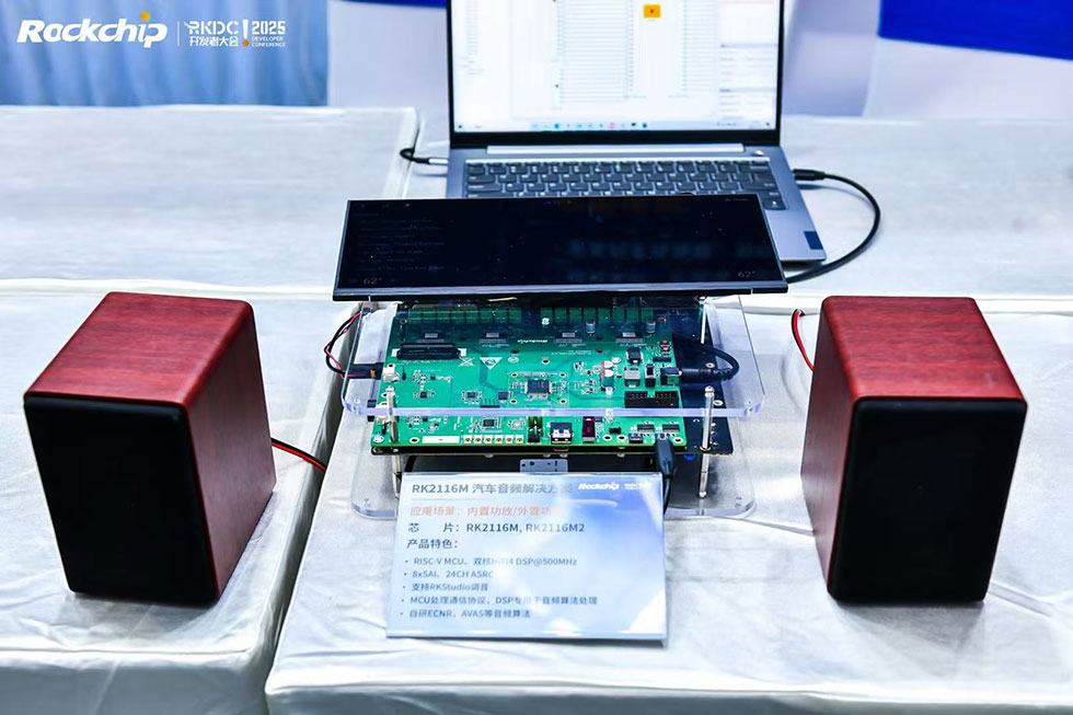 會上發布了最新一代DSP-RK2116M,其在RK2118M基礎上進行了架構和IP上的精簡,同時新增4TX4RX的Audio Codec,并且軟件高度兼容RK2118M,可無縫移植。