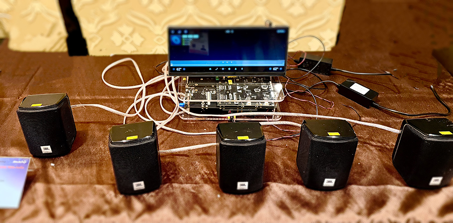 • 智能音頻:推出面向電競、家庭影院與商用場景的高品質音頻方案,結合AI處理實現聲音分離、空間聲場與個性化調音。由 RK3588與RK2118協同工作的 AI多音軌分離技術,通過深度學習模型,能夠從混合音頻中高精度地分離出人聲、吉他、貝斯、鼓點等獨立音軌,輸出高保真、低串音的高質量結果。