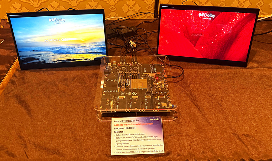 • 智能車載:展示了RK3588M系列車載領域的智能升級方案及落地成果包括CDC(Cockpit Domain Controller)座艙域控制器平臺及Dolby Vision智能視覺增強方案。