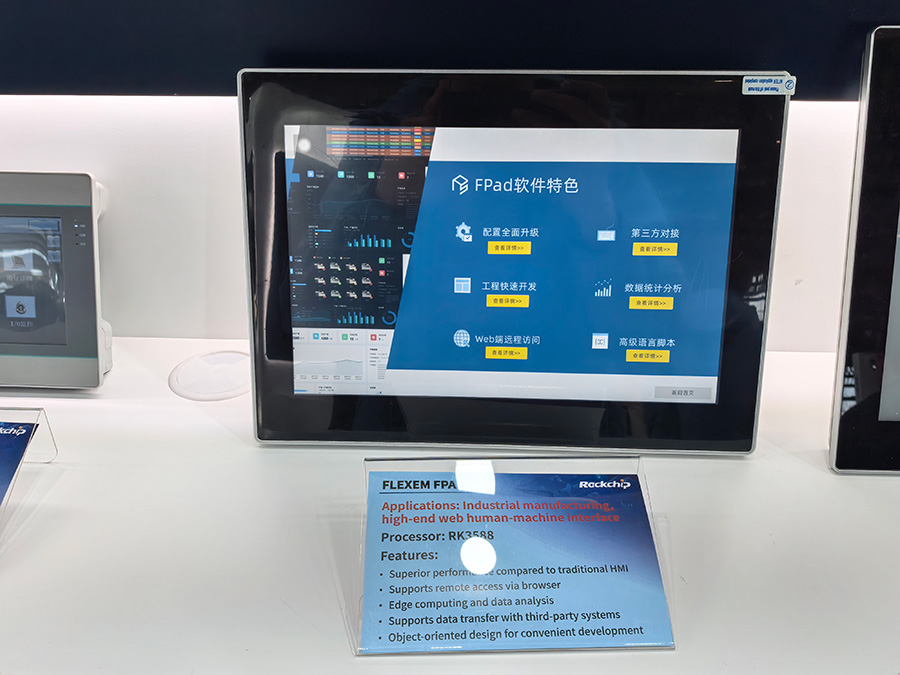 工業(yè)應(yīng)用展區(qū),瑞芯微通過HMI、PLC、工業(yè)網(wǎng)關(guān)、工業(yè)視覺四大細(xì)分場景,展示了其在工業(yè)控制層、感知層與邊緣計(jì)算層的全新技術(shù)方案及能力,呈現(xiàn)瑞芯微方案在接口豐富度、產(chǎn)品穩(wěn)定性及環(huán)境適應(yīng)性上的多重優(yōu)勢,從輕量化到高性能全面覆蓋工業(yè)場景的多樣化需求。