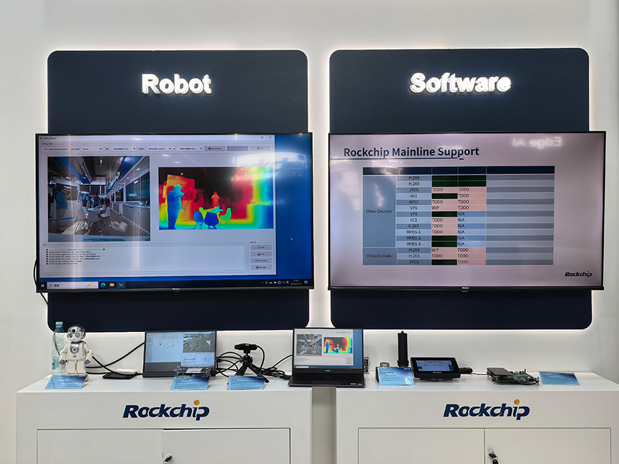 機(jī)器人展區(qū)呈現(xiàn)了瑞芯微在工業(yè)機(jī)器人及服務(wù)機(jī)器人領(lǐng)域的深厚積累與規(guī)?;逃贸晒?。旗艦芯片RK3588在機(jī)器人市場已有較高占有率,與國內(nèi)外主流機(jī)器人品牌共同打造多種形態(tài)的終端產(chǎn)品。在工業(yè)場景中,瑞芯微方案已廣泛應(yīng)用于服務(wù)機(jī)器人,工業(yè)機(jī)器人,陪伴機(jī)器人,農(nóng)業(yè)機(jī)器人等領(lǐng)域。