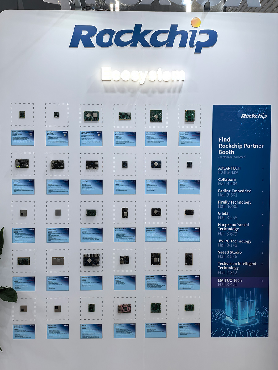 瑞芯微始終秉持與生態(tài)伙伴長期共建,攜手賦能終端伙伴加速場景落地的初心。在生態(tài)伙伴成果區(qū)展出了專注于工控領(lǐng)域的10余家合作伙伴的核心板及開發(fā)套件,搭載瑞芯微芯片包括RK3588J、RK3576J、RK3568J、RV1126BJ、RK3562J、RK3506J等,直觀呈現(xiàn)了瑞芯微生態(tài)資源的廣度與深度。
