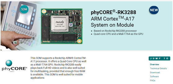 Famous processor and electronic enterprise Phytec launched phyCORE-RK3288 ARM CortexTM-A17 System on Module industrial control board, which is based on RK3288 SOM. According to the promotion materials on Phytec official website, the performance of RK3288 CPU and GPU is excellent and can easily deal with HD videos ,multitasking, and suitable for mobile applications